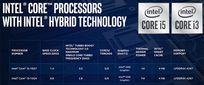 Уже упомянутый в статье Intel Core i5-L16G7 — это старший представитель новой гибридной архитектуры Lakefield, помимо которого пока анонсирован ещё только один процессор, i3-L13G4, отличающийся лишь меньшими тактовыми частотами ядер и меньшим же количеством исполнительных блоков встроенного графического процессора.