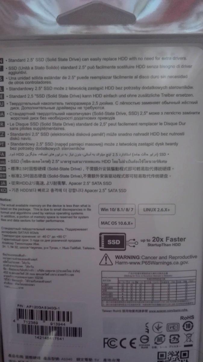 Для одного апгрейда мной был куплен в интернет-магазине накопитель Apacer AS340 Panther 120GB (AP120GAS340G-1). Он имеет форм-фактор 2,5" SATA3.