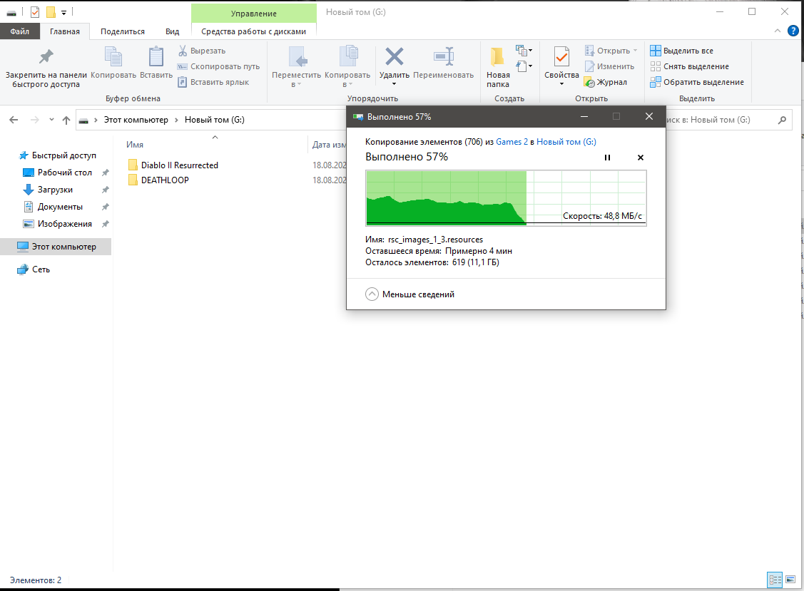 По просьбе "трудящихся компьютерного фронта", сделаю тест реального копирования. У меня в данный момент нет каких-то больших объемов аналогичных файлов. Поэтому буду копировать папки с играми. Не совсем правильно, но сойдет...