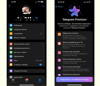 Владельцы айфонов будут переплачивать за подписку Telegram Premium 70 рублей
