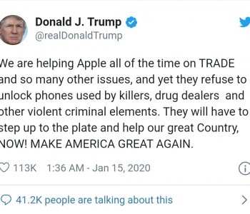 Дональд Трамп напрямую обратился к Apple с просьбой сотрудничества в вопросе разблокировки iPhone
