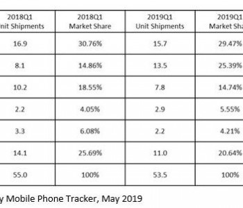 В первом квартале 2019 года только Xiaomi и Huawei смогли нарастить продажи смартфонов
