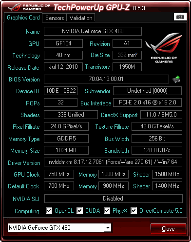 В моем компьютере уже долгое время обретается Palit Sonic GTX460 1024 на штатных 700/1400/1800.
