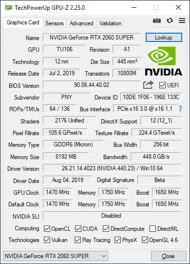 Тестирование видеокарты PNY GeForce RTX 2060 Super 8GB Dual Fan