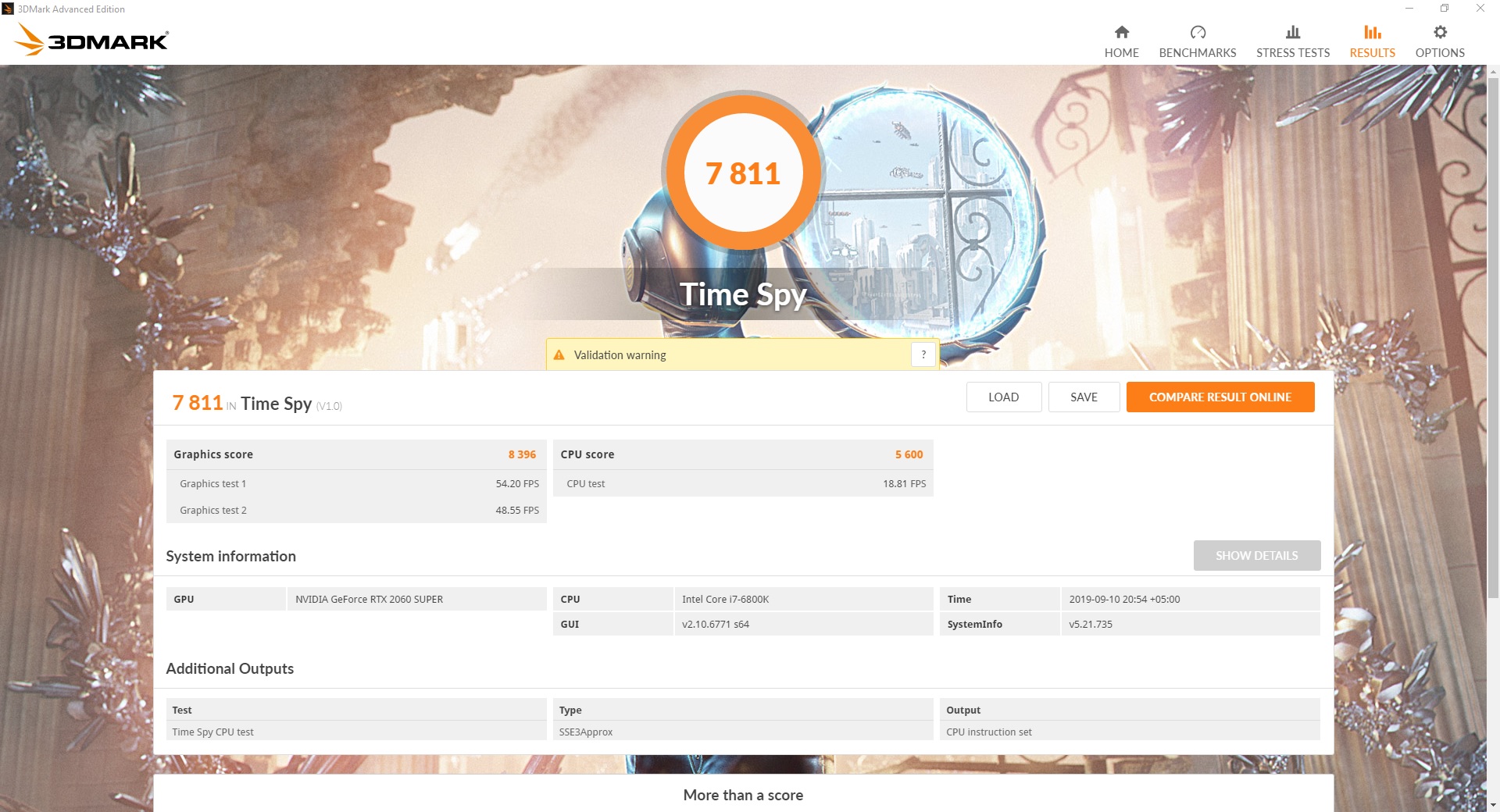На более свежем драйвере 440.23 карта набрала 8396 баллов в Graphic Score, что в пределах погрешности. Кстати, валидацию результат не прошел, сказался статус драйверов Beta.