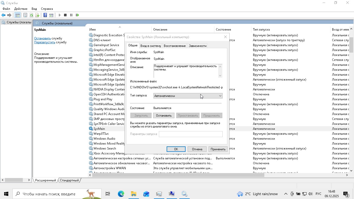 Следующий шаг — службы. Я нажал Win+R, ввёл services.msc. Нашёл службу SysMain (раньше Superfetch). Она пытается угадать, какие программы вы запустите, и грузит их в память заранее. На SSD от неё толку мало. Я поставил ей тип запуска «Вручную», вместо параметра "Автоматически".