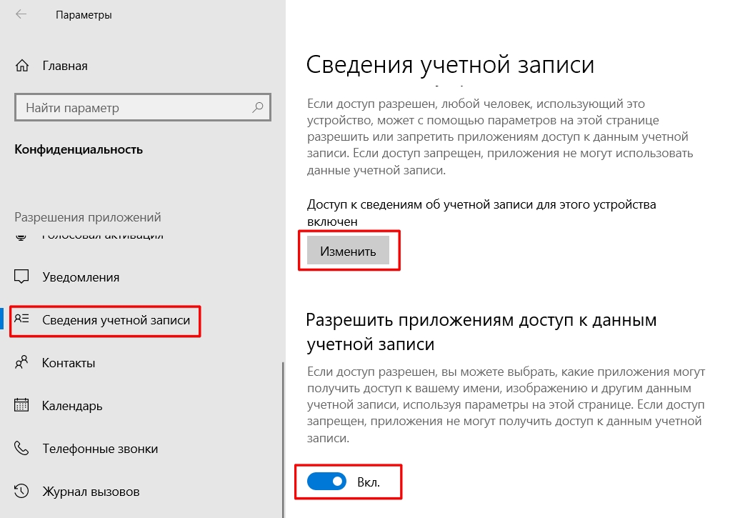В «Доступе к сведениям об учётной записи» тоже отключил всё. Функция отключения находится здесь: