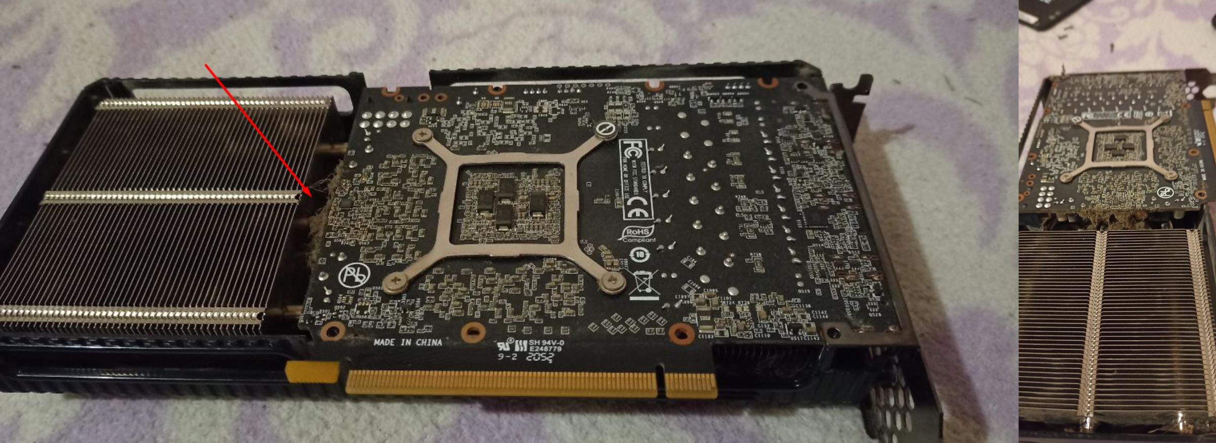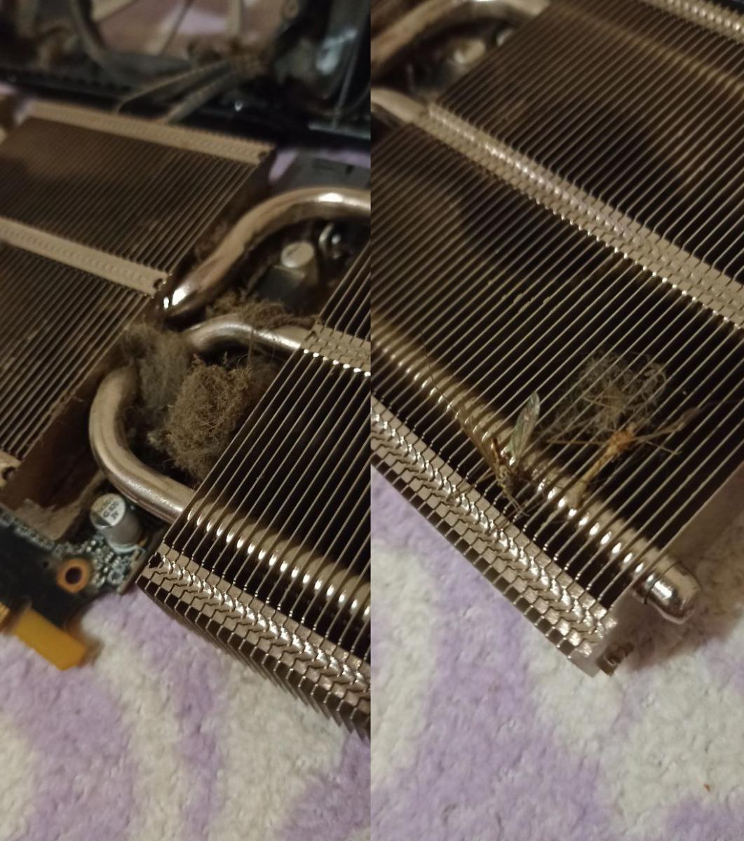Созвонился, он готов мне её привести ко мне домой и проверить. Я согласился. И так он приехал до меня, и я начал тестить карту. Все тесты проходит отлично но меня смутило что если присмотреться видно какая-то * шерсть* на радиаторе. Но я не стал придираться ведь это не смертельно да и цена меня полностью устраивала. И так сегодня я её разобрал и полностью обслужил и был в шоке.
