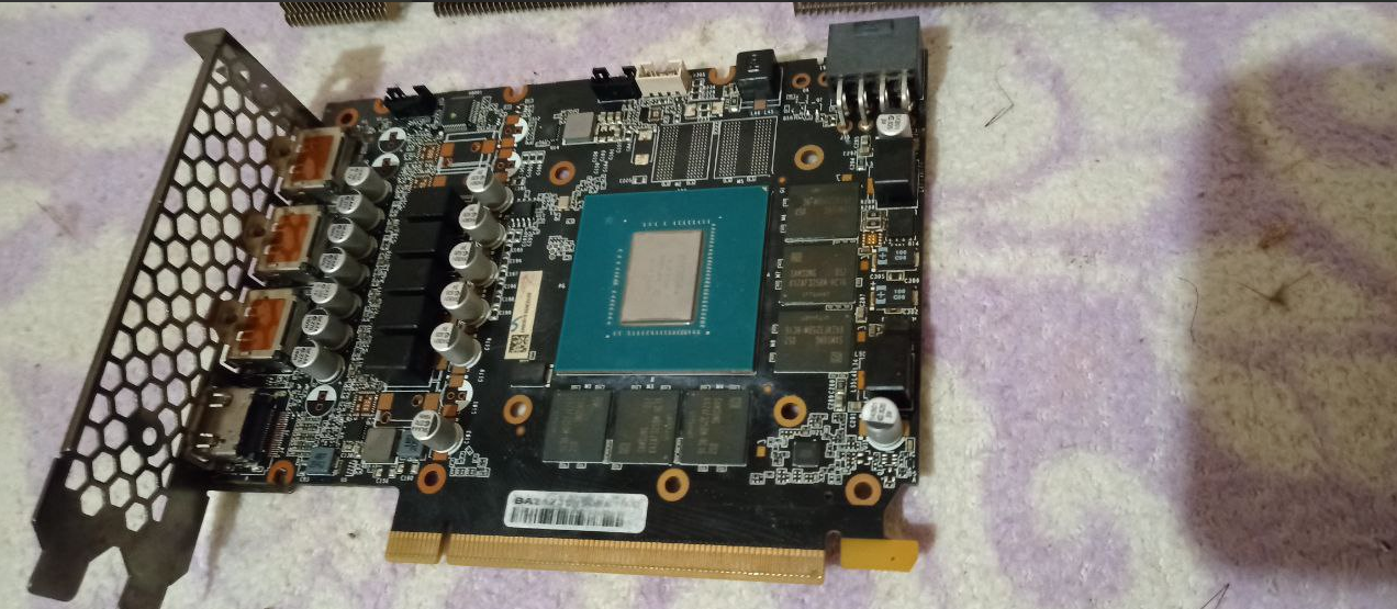 Закрутил заднюю крышку на два болтика, я заказал термопрокладки и буду их менять. Так как я не ожидал что там всё в масле и тем более продавец карты только * играл после работы* . Видеокарта в собранном виде :
