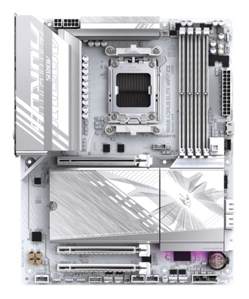 Gigabyte выпустила две материнские платы в форм-факторе ATX: B850 AORUS ELITE WIFI7 ICE (также известная как GIGABYTE B850 Ice Sculpture) и B850 AORUS ELITE WIFI7. Обе эти платы оснащены мощным 14+2+2-фазным источником питания, который обеспечивает стабильное и эффективное энергоснабжение для процессоров и других компонентов системы.