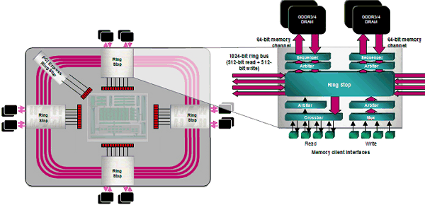 Вообще используемая в R600 двунаправленная (512 бит на чтение и 512 бит на запись) кольцевая шина с восемью 64-битными каналами памяти чисто технически, конечно, до сих пор впечатляет.