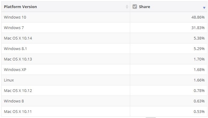 После 14 января 2020 года Windows 7 перестанет получать обновления безопасности. Естественно, Microsoft утверждает, что лучшим способом защитить свои компьютеры является переход на Windows 10. С долей рынка в Windows 7 в 31% можно не сомневаться, что система проживёт ещё много лет. Так было и в случае с Windows XP, которая после прекращения поддержки в апреле 2014 года ещё много лет маячила в подобных статистических отчётах.