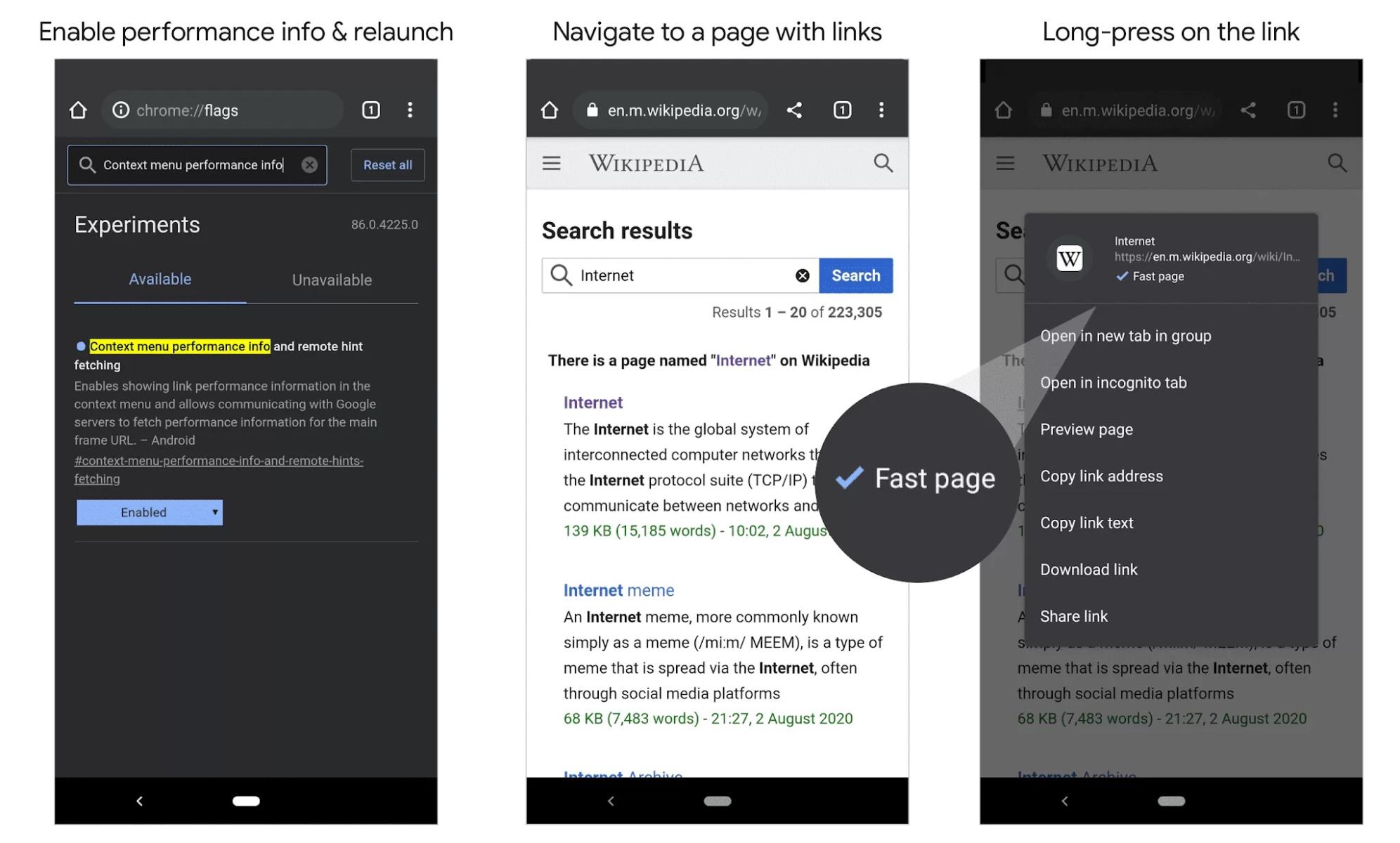 В мае Google объявила, что будет пользоваться Core Web Vitals при ранжировании поисковых результатов. Компания надеется, что метка пригодится тем пользователям, у кого доступ в интернет медленный и нестабильный. Метка пока появляется только в контекстном меню, но в будущем может быть обнаружена в других частях интерфейса браузера, в первую очередь в адресной строке.