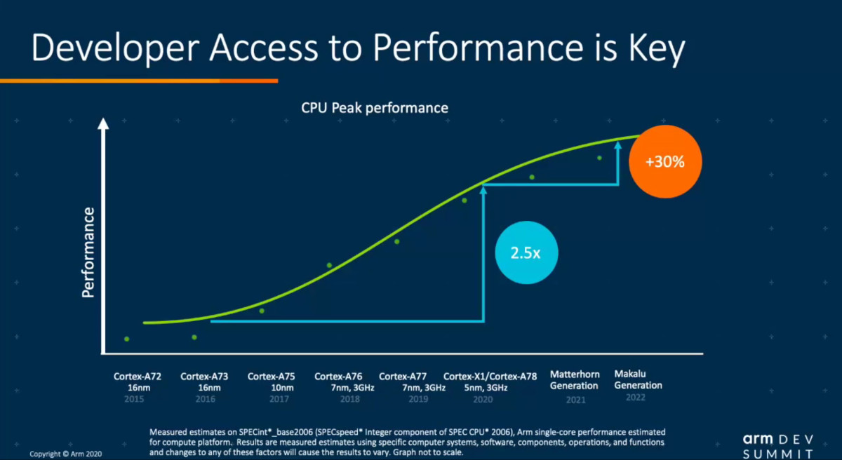 Кодовые имена ядер ARM на 2021 и 2022 годы Matterhorn и Makalu. По сравнению с Cortex-A78 производительность Makalu может увеличиться на 30%.