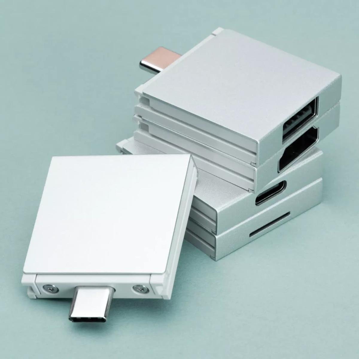 Четыре порта USB-C находятся в углублении корпуса, позволяя устанавливать любые порты под ваши запросы через съёмные модули. Подключение через USB-C позволяет получить порты USB-A, HDMI, microSD, DisplayPort и даже разъём для наушников. Вы можете выбрать, с какой стороны ноутбука будут эти разъёмы.
