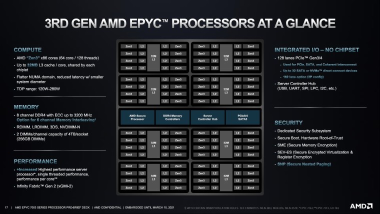 Компания AMD готовит архитектуру следующего поколения для своих процессоров и о ней появляется всё больше сведений. Последняя информация сообщает, что серверные процессоры EPYC на архитектуре Zen 4 (под кодовым названием Genoa) получат до 128 ядер. Это вдвое больше, чем есть у нынешних процессоров EPYC 7003.