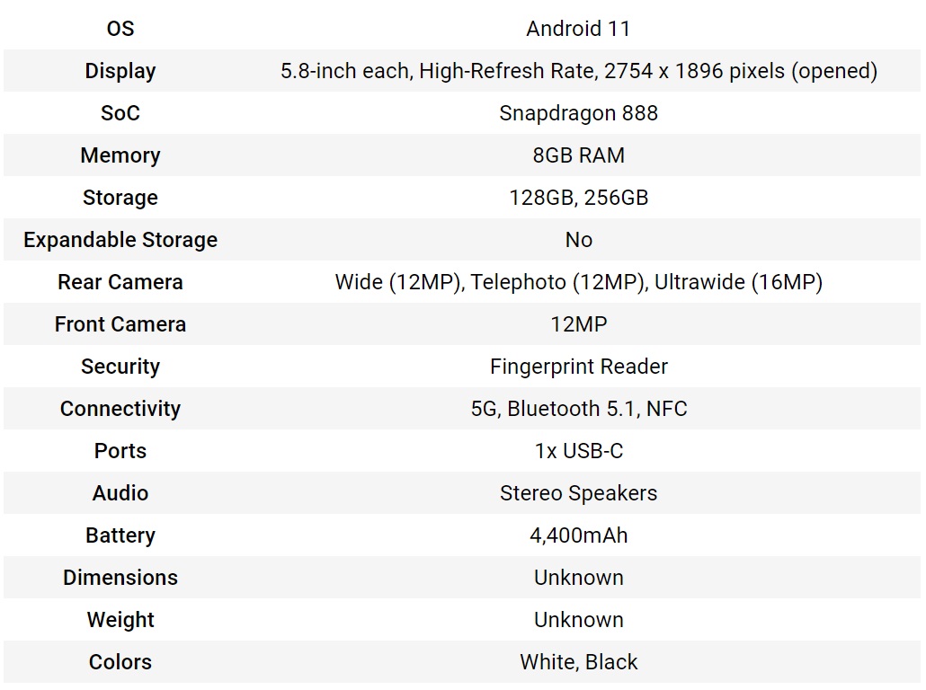 Появился этот документ 17 сентября и он описывает портативный телефон с кодовым именем C3K1995. Большая часть документа посвящена результатам тестов, но есть и описание характеристик. Они подтверждают предыдущие утечки данных, описывая обновлённые камеры и систему на чипе Snapdragon 888. Стало известно больше подробностей относительно того, чем устройство отличается от модели первого поколения.