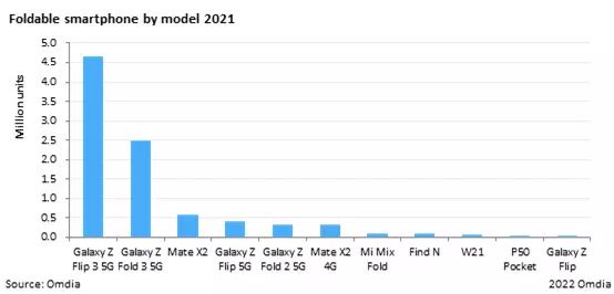 Вторым производителем является Huawei с 900 тысячами выпущенных устройств. В Китае был выпущен также Xiaomi Mix Fold, но большой популярности не снискал. В этом году должен появиться Xiaomi Mix Fold 2.