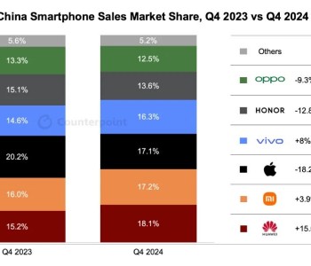 Huawei в последнем квартале 2024 года заняла 18,1% рынка смартфонов в Китае