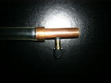 Мне понадобилась верхняя часть , немножко отрежем , очистим от резины , зачистим . Дальше просто берем медную трубку по диаметру шлангов вашей СВО , сверлим посередине отверстие 6,1 мм. , соединяем эти два предмета и спаиваем . Все .