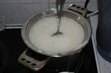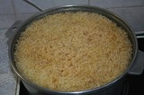 Теперь берем что-нить длинное толщиной с мизинец и протыкаем рис до дна в 7-9 местах. Тока аккуратно, оттуда брызгать кипятком будет.