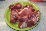 Моем мяско, если надо режем, только не мелкими кусочками. Средними, так скажем. Даже скорее крупными.