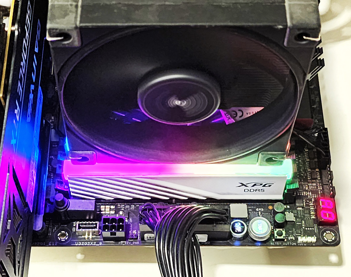 А сразу же заменил ею свой подуставший уже Kingston DDR5-4800. Для снятия и установки пришлось демонтировать один из вентиляторов процессорного кулера: