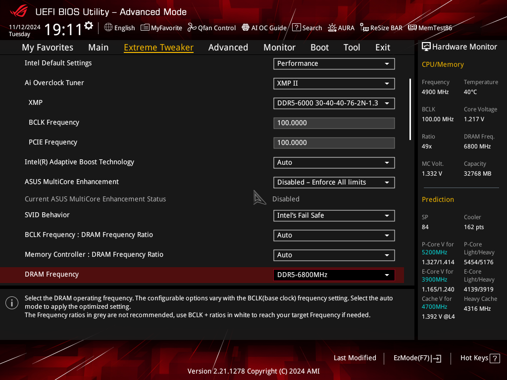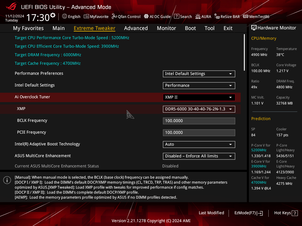 Изначально память запускается на 4800 МГц, чтобы получить заветные 6000, нужно активировать в BIOS профиль XMP. А в случае материнских плат ASUS полный профиль обычно скрывается под пунктом XMP II.