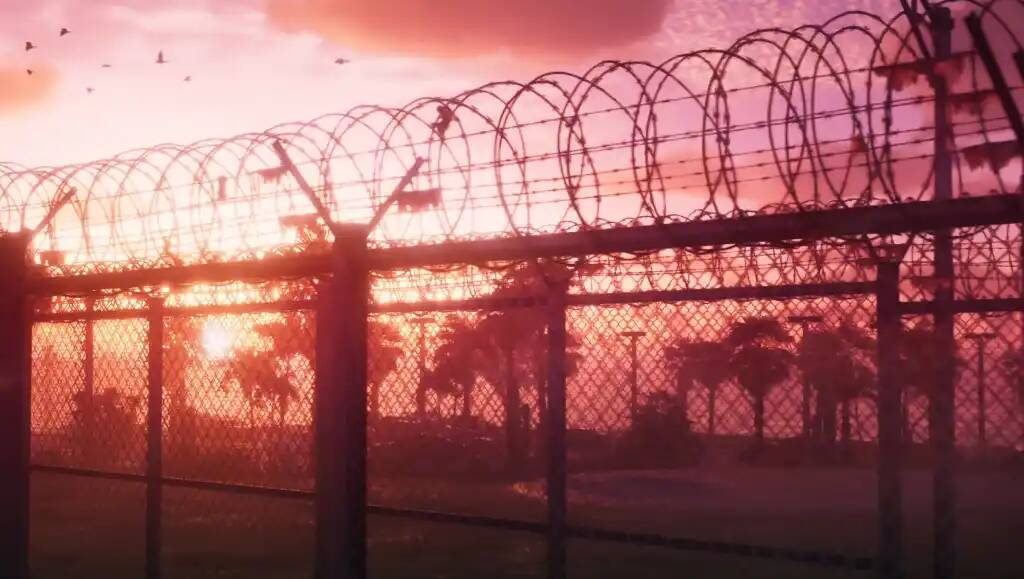 1 - Начальная сцена трейлера изображает закат во Флориде, напоминающий тизерный твит Rockstar. Визуальный ряд включает дикую природу птиц и пальмы.