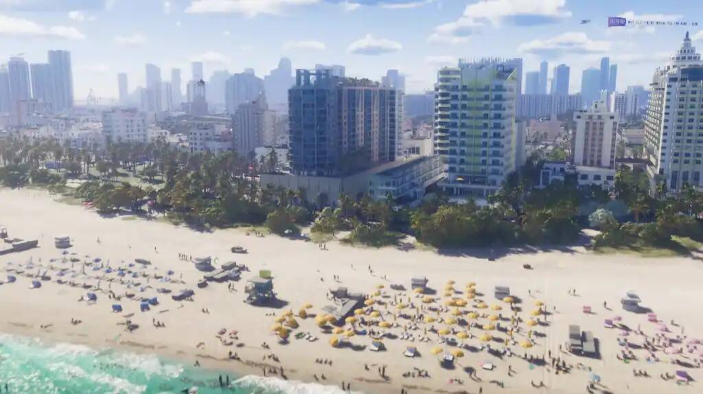 9 - Ракурс камеры переходит к многолюдному пляжу, возможно, представляющему Вашингтон или Оушен-Бич из GTA Vice City.
