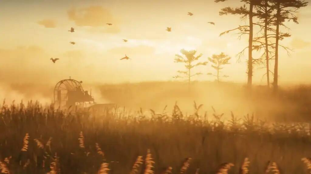 14 - Трейлер переносит в сельскую местность, напоминающую Флоридские Эверглейдс, указывая на разнообразную карту, включающую различные виды транспорта, такие как воздушные лодки.