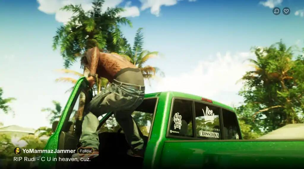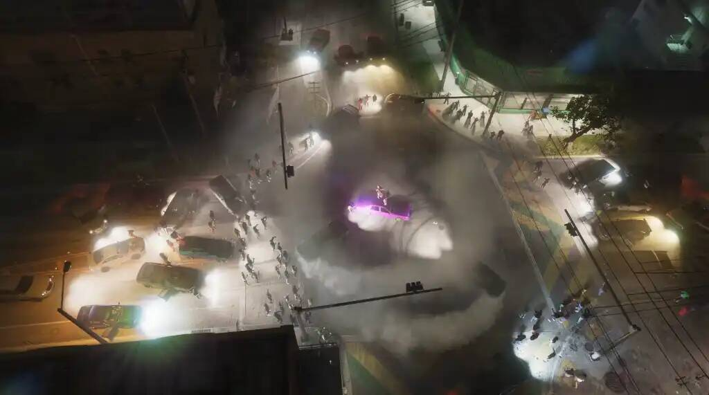 49 - Ожидается, что автомобильная культура будет играть центральную роль в GTA 6. Свидетельством этого является собрание, изображенное с двух ракурсов: вид сверху на транспортное средство, выполняющее маневр "пончик", и клип в социальных сетях, показывающий людей, танцующих на крыше автомобиля.