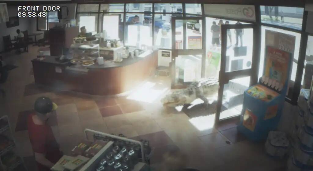 50 - Секундная запись с камеры наблюдения на автозаправочной станции не только запечатлевает аллигатора в неожиданном месте, но и подчеркивает замысловатый дизайн игрового интерьера. Интерьер круглосуточного магазина тщательно проработан, от полок с товарами до отдела пекарни и киоска с лотерейными билетами, что отражает внимание к деталям, присущее внешнему оформлению.
