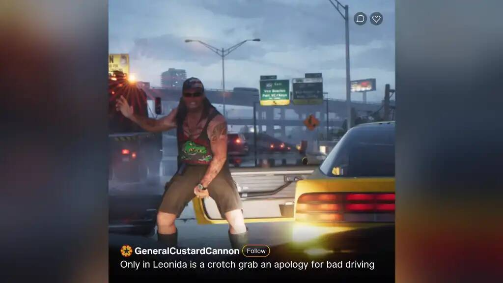 46 - Трейлер включает в себя многочисленные виньетки из социальных сетей. Интеграция этих элементов в повествование и игровой процесс еще предстоит прояснить. Однако очевидно, что Rockstar намерена высмеять культуру влиятельных лиц и поверхностных онлайн-взаимодействий. Примером может служить аккаунт "Dad Bod Squad", на котором изображен пожилой человек в сопровождении значительно более молодых женщин, с подписью, отсылающей к концепции сладких папиков.
