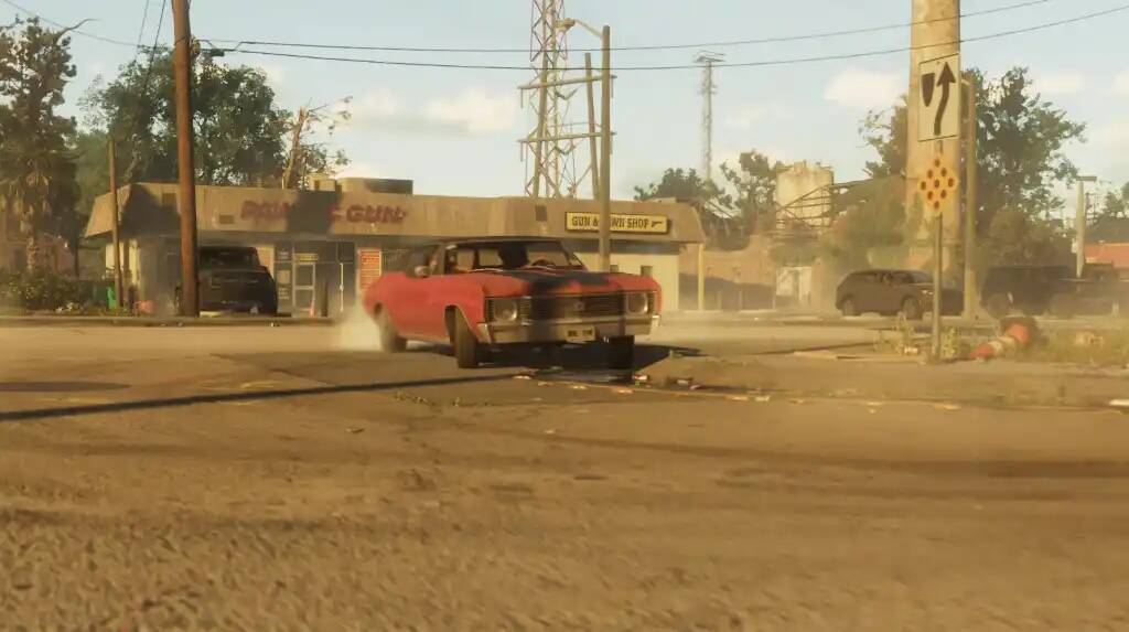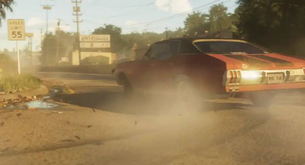 55 - Полицейский на месте происшествия идентифицирован как сотрудник департамента шерифа округа Леонард, на что указывает патрульная машина слева. Более ранние упоминания округа Келли предполагают, что карта для GTA 6 будет охватывать несколько округов в дополнение к Вайс-Сити.