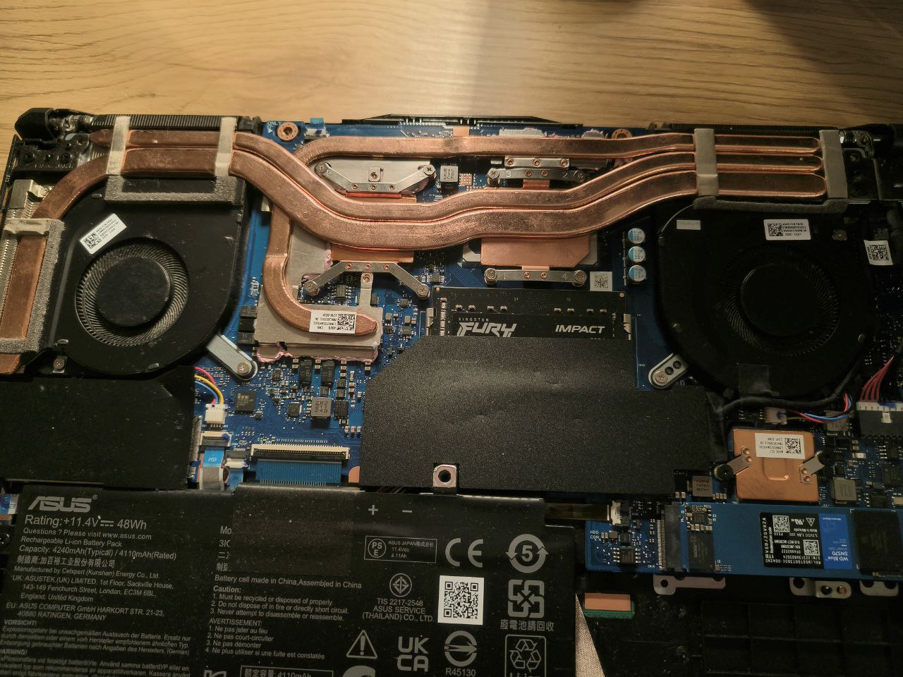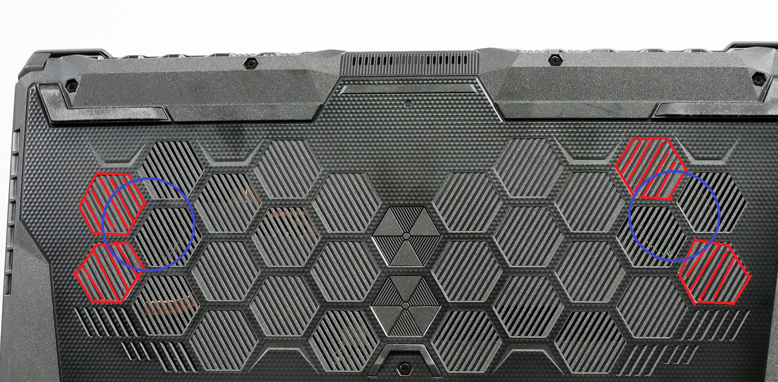 Изначально часть кулеров перекрывается нижней крышкой ноутбука и урезает потоки воздуха. Спасибо проектировщикам ASUS.