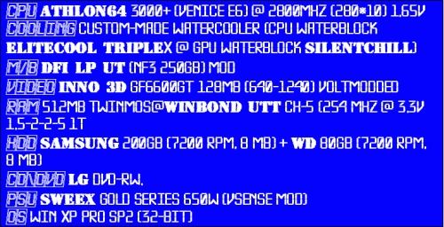 Недавно, по случаю, произвел легкий апгрейд. Сменил проц с А64 2800 (CG) на 3000 (Venice E6) и прикупил планку винбонда (сенкс Cyclonе).