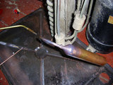 Через полчаса испаритель был чист. И я приступил к пайке отсасывающей трубки. Капилляр вставился плотно, и я отрегулировал его так чтоб он не доставал до дна 5-6 мм и начал припаивать отсасывающую трубку, но так как штуцер был из латуни, припой не «натекал» не него, пришлось идти к холодильщикам и одолжить флюса. С ним всё пошло как по маслу.