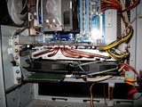 Затем смонтировал уже готовый кулер на видеокарту. Получилось нечто, обладающее монструозными размерами: