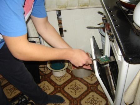 Было решено: суём в печь Athlon XP 1600+ Palomino и Sempron 2800+ Thoroughbred. Далее ждём и тестируем, если разгонный потенциал увеличился у выше перечисленных процов, то суём в печь мой Athlon XP 2600+ Barton, если нет, то думаем. Тестовый проц тоже оставили в духовке, дабы проверить, что будет с процом через час в духовке (два раза по полчаса). Термопару зажали под совком для более достоверного измерения температуры.