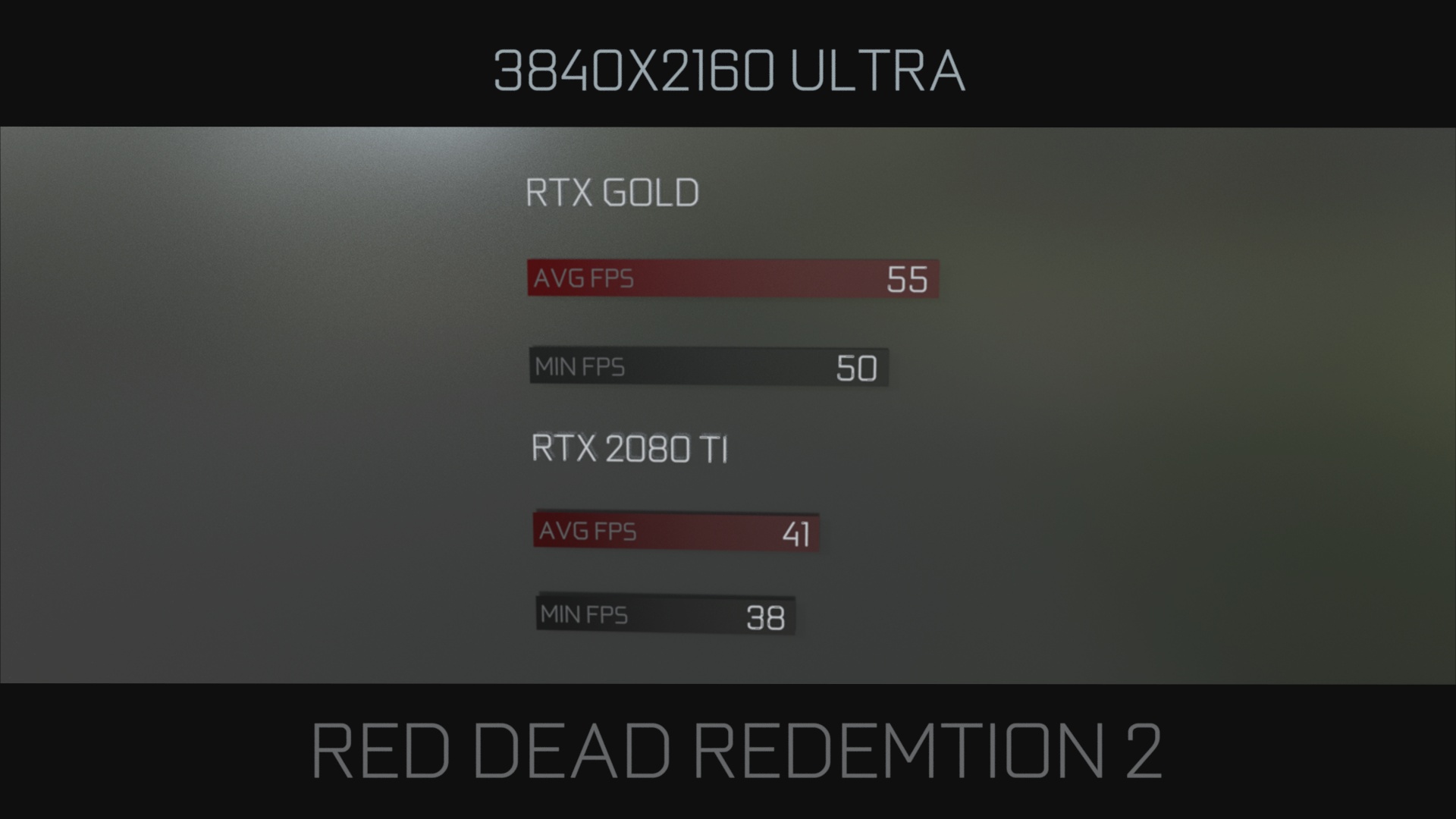 Согласно легенде у Nvidia накопилось некоторое количество отборных чипов, способных работать при задействованных на 100% количестве ядер на кристалле. Таким образом свет увидит ядро TU100 с максимально раскрытым потенциалом имея 5120 cuda ядер, 640 тензорных и 80 RT ядер. Пропускная способность памяти у RTX GOLD станет выше на 41%, а ее объем увеличен до 16 Гб. Так будет за счет использования памяти стандарта HBM2 вместо GDDR6. Энергопотребление RTX GOLD при этом останется в пределах 250W, что не превысит значение RTX 2080Ti.