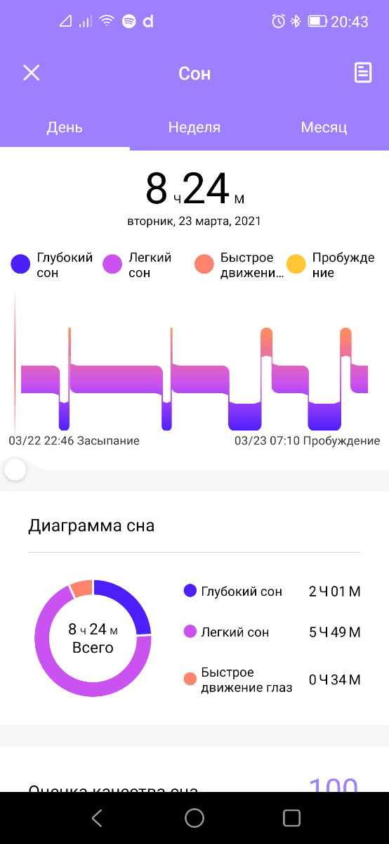 Для того, чтобы посмотреть время, достаточно просто вскинуть руку с умными часами и повернуть их экраном наверх. С одной стороны, это удобно, так как избавляет от необходимости нажимать что-либо второй рукой, чтобы банально посмотреть время, что сильно снижало бы удобство использования. С другой стороны, этот жест не всегда распознается однозначно, что заставляет либо делать его весьма размашисто и картинно, либо иногда повторять по два-три раза, пока датчик не сработает как надо. При этом во время сна часы будут часто включать экран, срабатывая ложно. Чтобы экран не включался во время сна ночью, разработчики предусмотрели отключение функции автоматического включения экрана в определенное время, которое пользователь может задать вручную через приложение, речь о котором пойдет ниже.