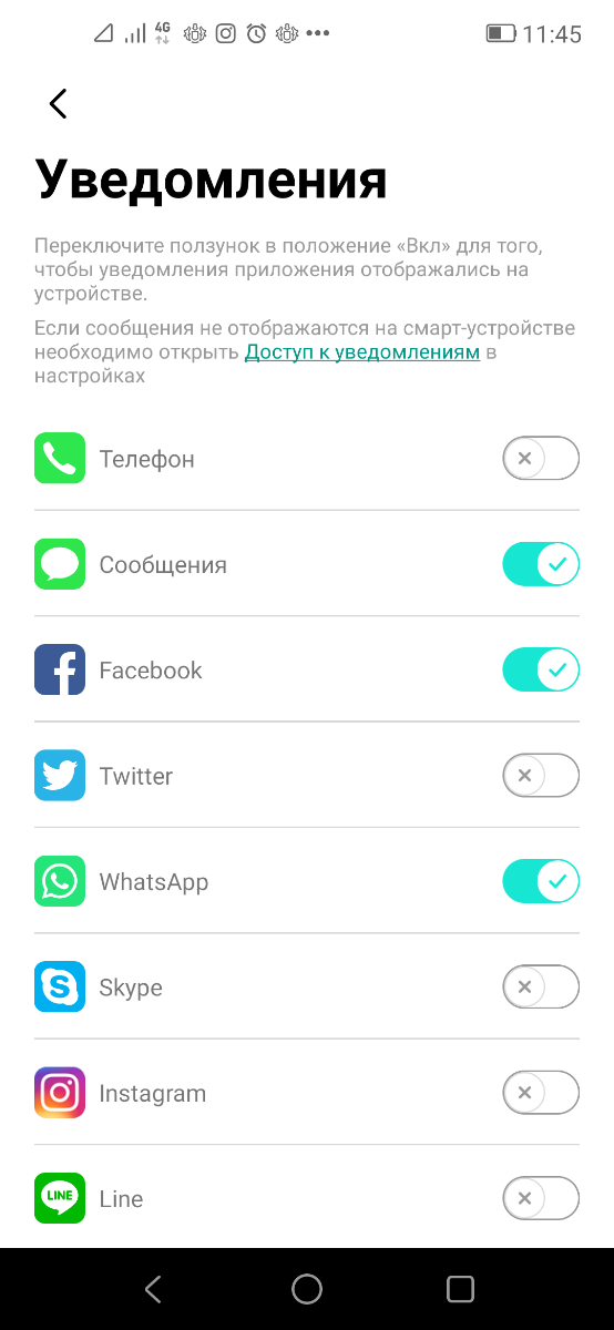 Следующий пункт в меню – «Сообщения». Часы позволяют просматривать SMS и сообщения из некоторых популярных мессенджеров и соцсетей, но не всех, а только тех, которые поддерживаются. Отображается пара-тройка последних сообщений. Экран у устройства небольшой, и длинный пост будет сильно «порезан». Часы можно использовать в качестве некоего аналога "пейджера", но не более. Например, если кто-то пишет в Facebook или WhatsApp, часы завибрируют и покажут текст, а там уже, в зависимости от важности написанного, можно обратиться к смартфону или не отвлекаться на это.