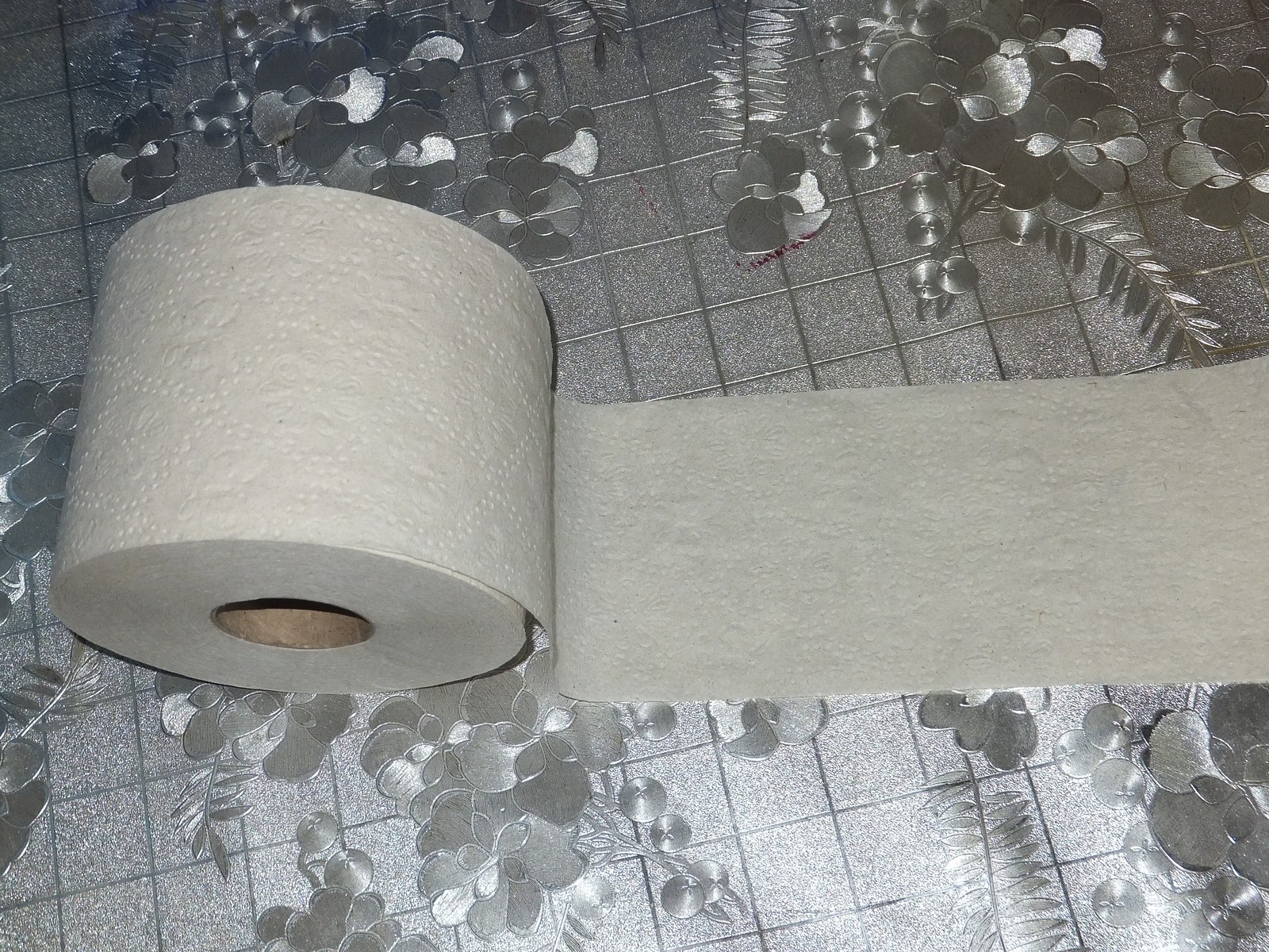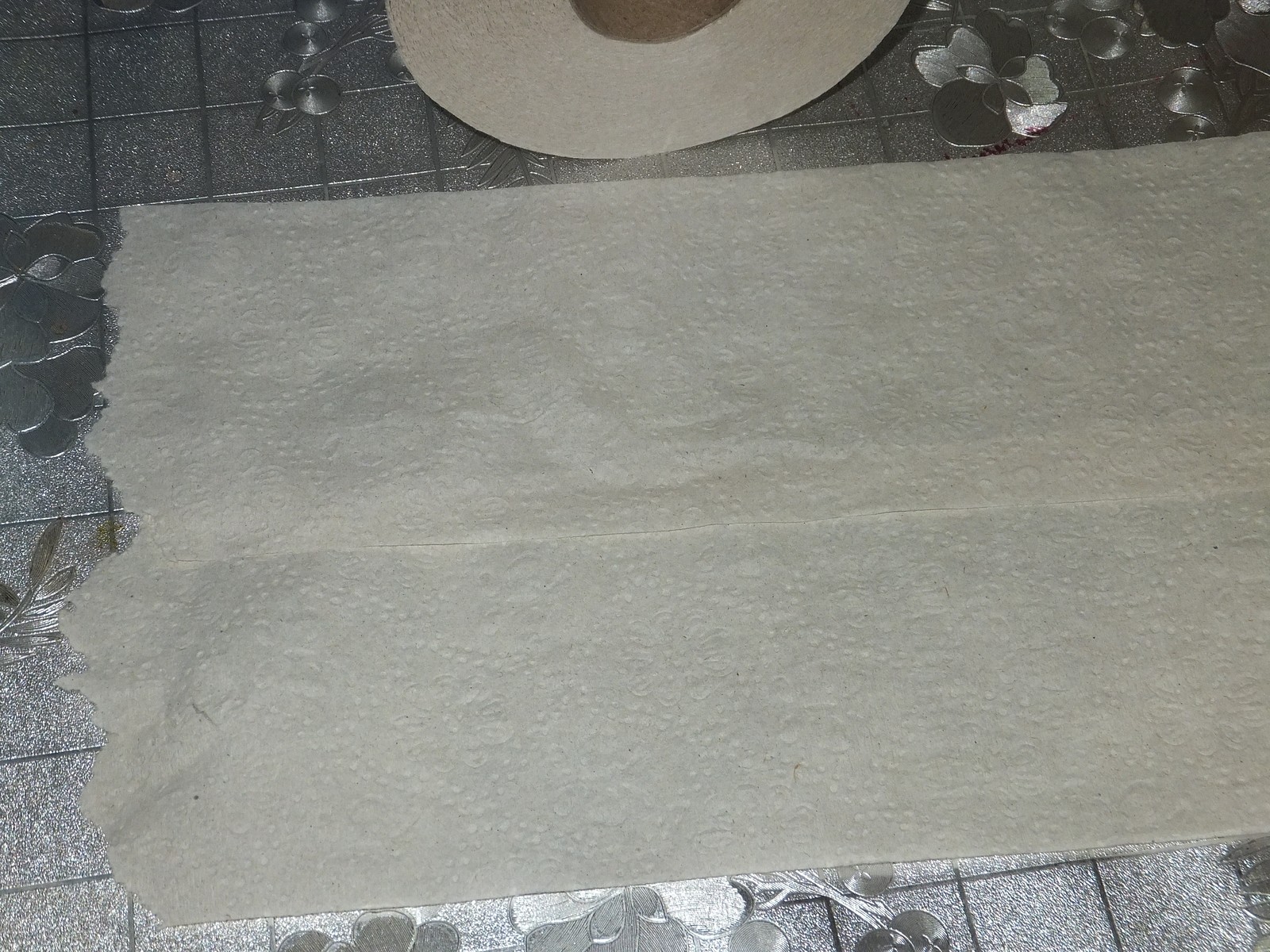 Как и обещали на этикетке бумага имеет тиснение без перфорации, в качестве узора какие-то цветочки и бабочки...