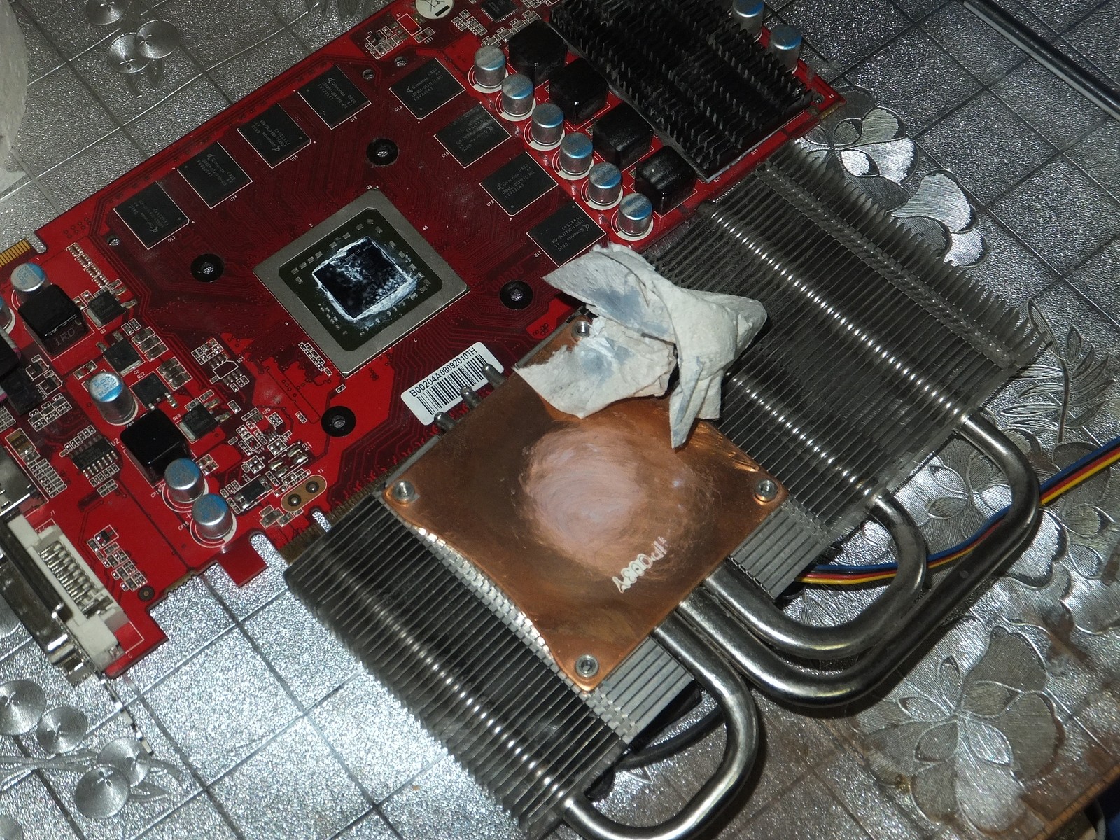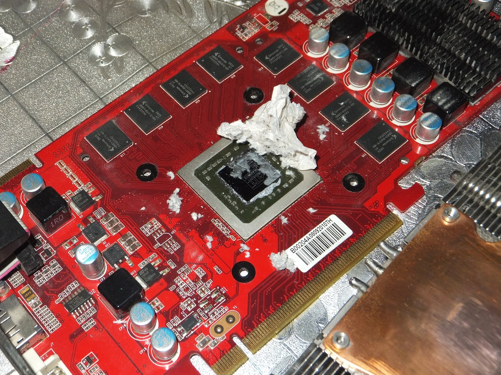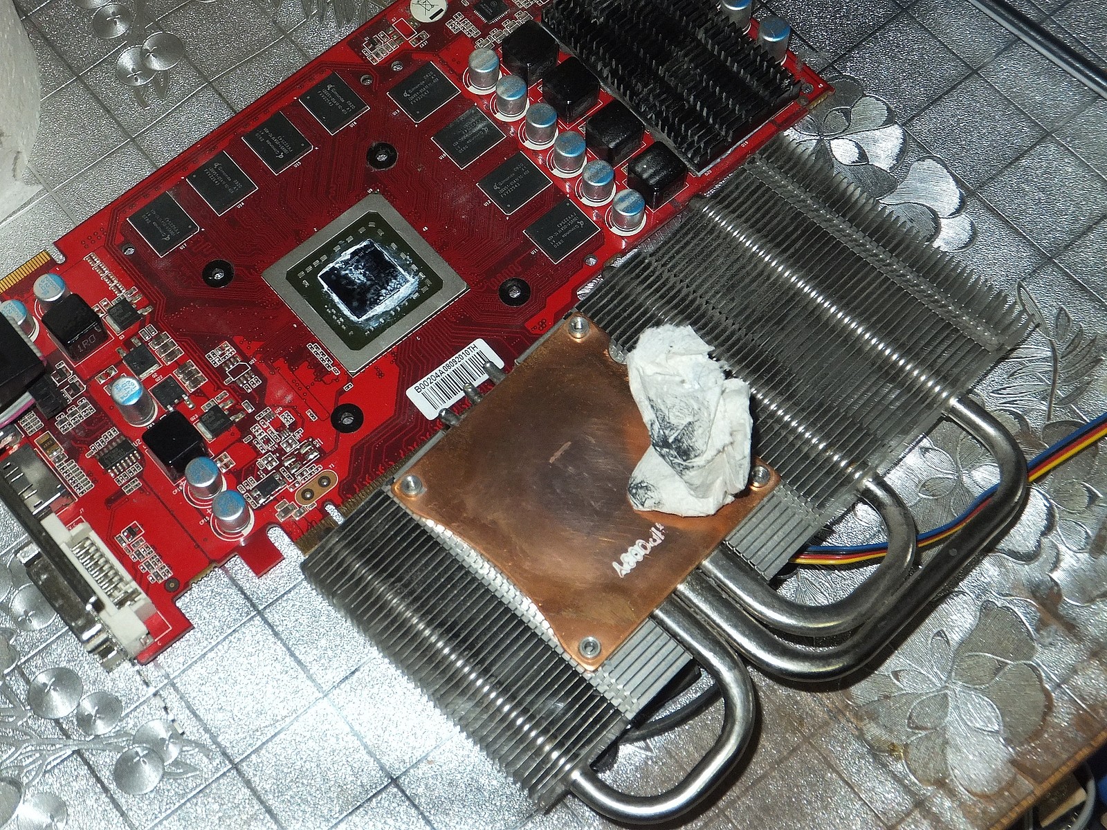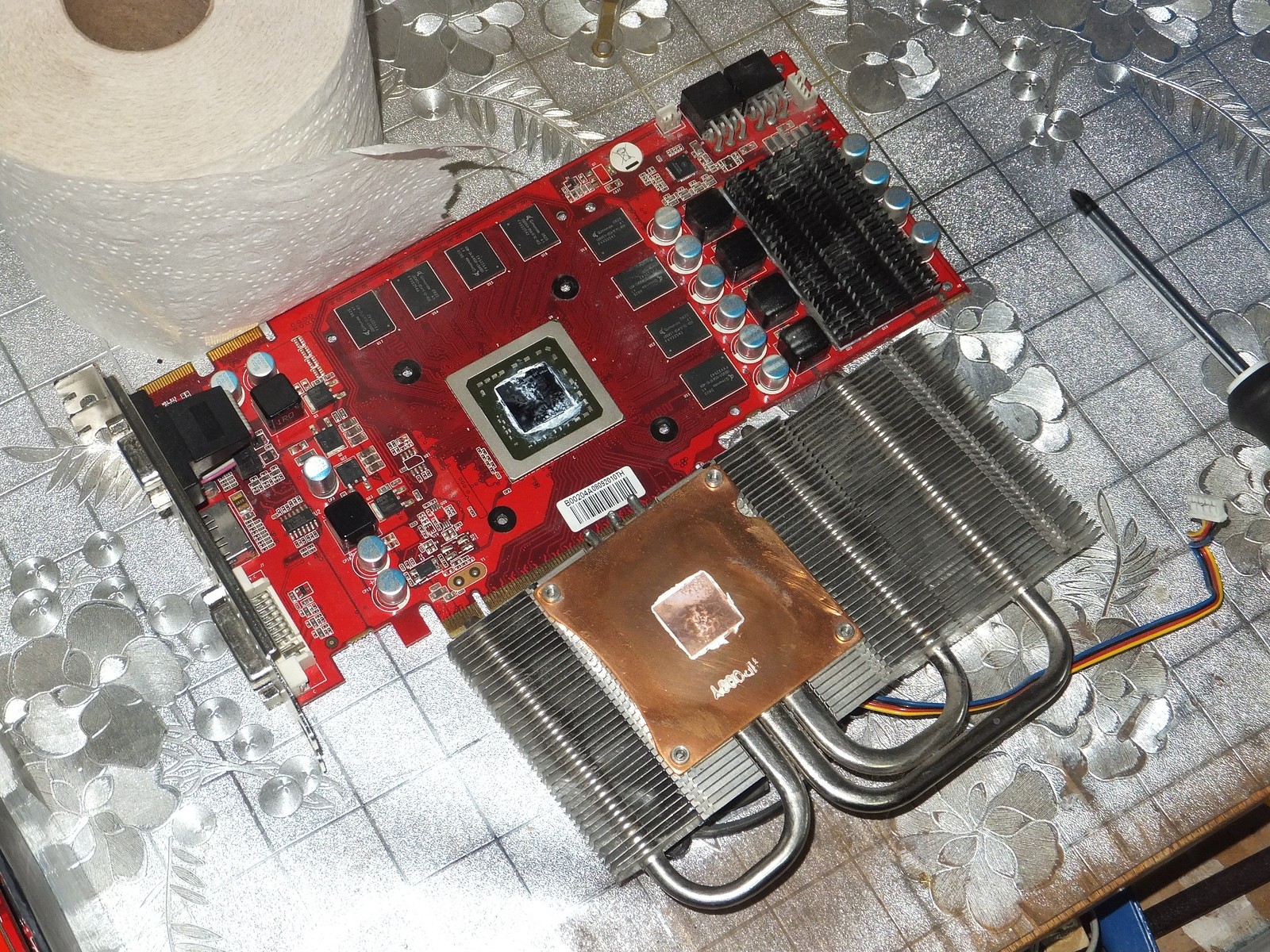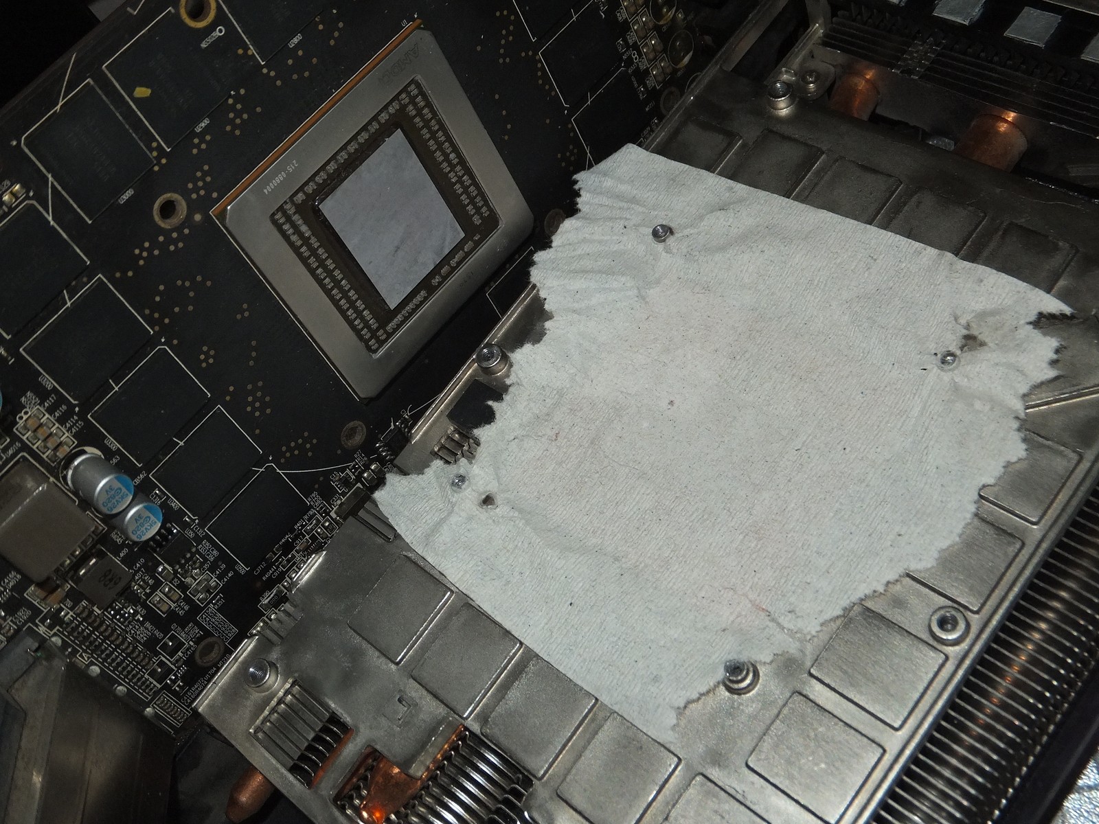 Прокладка из туалетной бумаги просто спасает в такой ситуации, и значительно облегчает разборку видеокарты при необходимости сдернуть какие-нибудь запчасти.
