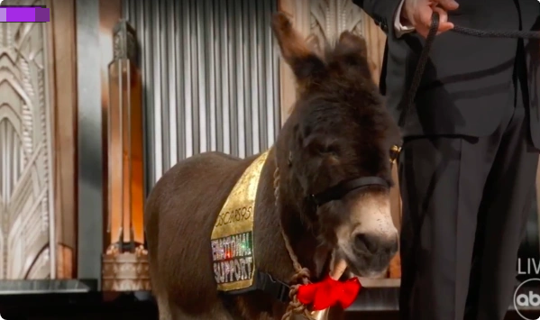 Всем нашлось место на этом празднике жизни. Церемонию смогла посетить даже Дженни — ослица из «Банши Инишерина». По словам ведущего, Дженни – не только актриса, но и сертифицированный осел из службы эмоциональной поддержки (другого способа объяснить необходимость перевозки животного в самолете авиаперевозчику не было). Киммел порекомендовал собравшимся в случае появления чувства беспокойства или нервозности из-за проигрыша, просто подойти и обнять Дженни.