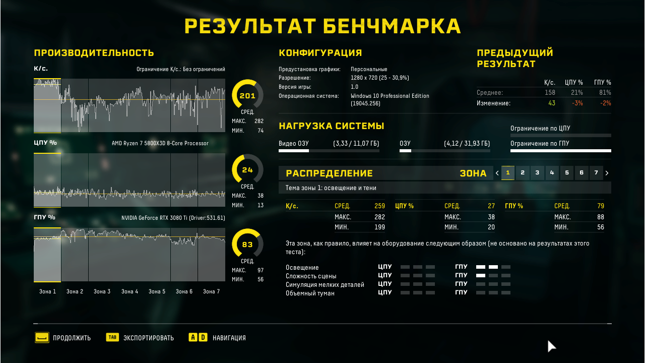 Тестирование завершено. Теперь можно сделать представление о том на что способен 5800х3d в таком ужатом режиме, при напряжении 0.9в, работая даже на самой бюджетной плате под am4 и дешевым кулером типа боксового для r5 1600. И даже при этом производительность довольно высока и камень способен загрузить карту 3080ти на полную в большинстве игр, если выставить максималки и разрешение 1080p.
