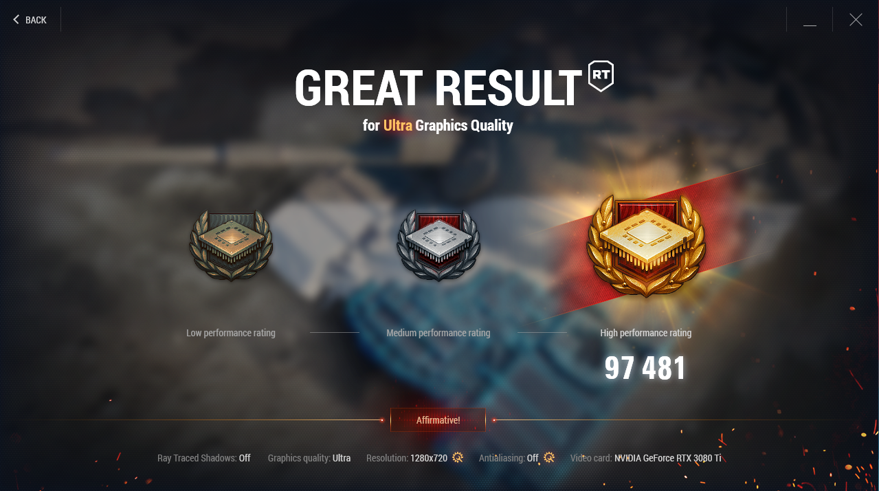 Танки бенчмарк. Разрешение 1280х720 Ульра-настройки