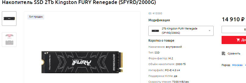 Эксперты отмечают, что покупатели скоростных SSD могут немного разочароваться, поскольку большая часть потенциала подобных продуктов остаётся не реализована. Обойдёмся без разбора причин такой странной ситуации, но в любом случае система с Kingston FURY Renegade будет работать на максимуме возможностей. Проще говоря, быстрее чтение и запись файлов уже осуществляться не может, а это довольно весомый повод купить именно такой твердотельный накопитель. Скорость данного SSD в режиме чтения достигает 7300 МБ/с, тогда как запись равна 7000 МБ/с. Даже по меркам энтузиастов, это очень много, ну а мы тратим всего 15 тысяч рублей. Кстати, инсайдеры пишут, что в 2024 году ожидается резкое подорожание твердотельных накопителей, поэтому такой выбор тем более кажется оправданным. Что до ёмкости, то 2 Тб должно хватить для записи игр, хранения целой коллекции домашнего видео и многих других задач. Мало точно не будет, ну а покупать сегодня жёсткий диск мы не рекомендуем. HDD вам понадобится только в том случае, если есть желание превратить компьютер в сервер для хранения коллекции сериалов и лучших фильмов. Учитывая тот факт, что скорость интернета позволяет смотреть всё это в онлайне, нет никакого смысла переплачивать.