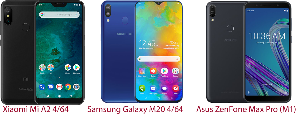 Перед нами три разных телефона: Asus ZenFone Max Pro (M1) 4/64GB, Samsung Galaxy M20 4/64 и Xiaomi Mi A2 4/64. Любой из них имеет своих поклонников и непримиримых критиков.